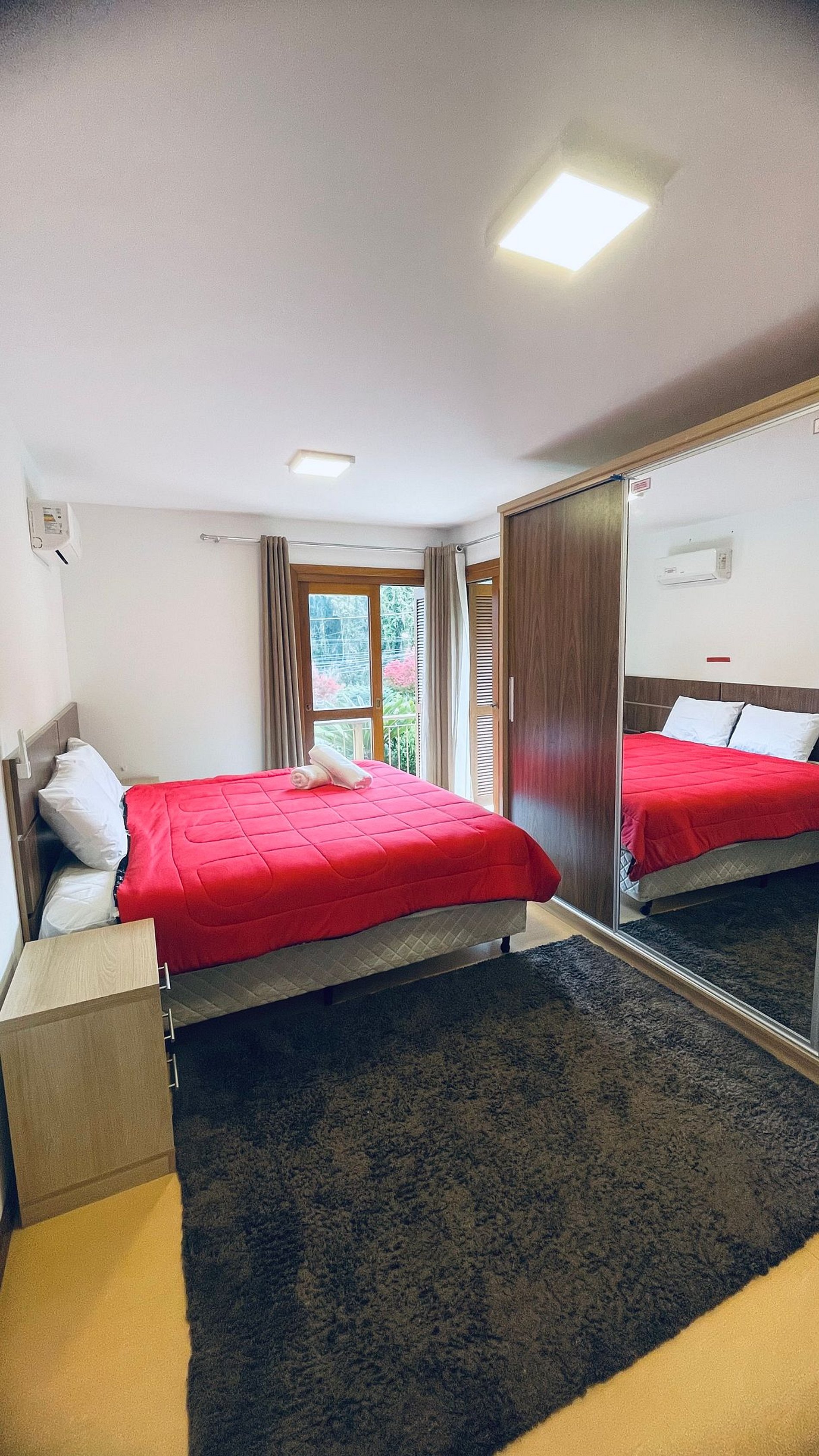 Apartamento Vale do Bosque: Seu Refúgio Exclusivo em Gramado Situado no prestigiado Condomínio Vale do Bosque, este apartamento é o local ideal para quem busca o equilíbrio perfeito entre a tranquilidade de um ambiente seguro e a conveniência de estar a poucos minutos das principais atrações de Gramado. Com uma localização privilegiada, a apenas 800 metros da Rua Coberta, você terá fácil acesso a tudo o que a cidade oferece. Este espaçoso imóvel de 120 m² foi pensado para o seu conforto e estilo, oferecendo três quartos, sendo duas suítes privativas e um terceiro quarto com cama de casal, garantindo privacidade e bem-estar para todos os hóspedes. Para sua comodidade, o apartamento dispõe de três banheiros completos, Wi-Fi gratuito e televisão com canais abertos na sala. A cozinha planejada e totalmente equipada permite que você prepare suas refeições com praticidade. Relaxe no living com dois ambientes, desfrute do ar-condicionado split (quente/frio) em todos os cômodos e aproveite a churrasqueira privativa para momentos de confraternização. O apartamento também conta com uma vaga de estacionamento privativo e gratuito, e o prédio possui elevador para sua total conveniência. Para sua comodidade, disponibilizamos: Roupas de cama e banho: 1 jogo de roupas de cama e 1 cobertor/edredom por cama; 1 toalha de banho por hóspede; 1 toalha de rosto por banheiro; e 1 tapete de saída de banho por banheiro. Secador de cabelo. Observações: Serviços de quarto e troca de roupas de cama e banho estão disponíveis mediante custo adicional, além da taxa de limpeza. Para check-ins a partir das 20h, será cobrada uma taxa extra de R$ 70,00, a ser paga diretamente ao responsável pelo seu check-in no momento da chegada. Será uma honra recebê-lo em Gramado e proporcionar uma estadia verdadeiramente inesquecível!